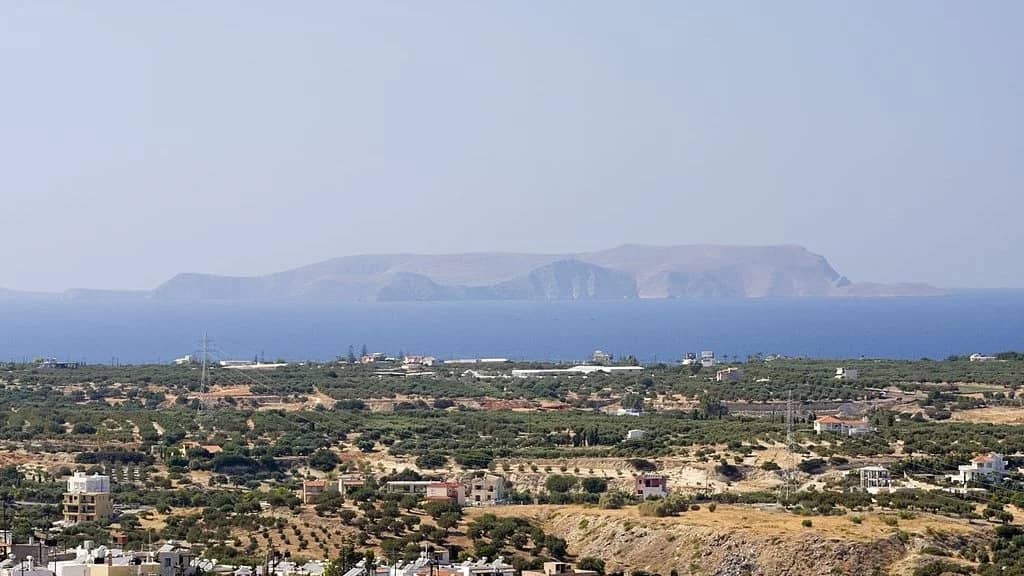 (Voor Kreta liggen een aantal rotseilanden naast elkaar. Er groeit niets. Gewoon eilanden. Maar de oude Grieken vervulden het met fantasie: het was een zeemonster dat het eiland aanviel, tot Zeus ingreep. Hij versteende de hagedis. En verdomd, de eilanden lijken samen inderdaad op een hagedis. De staart. De kop.)